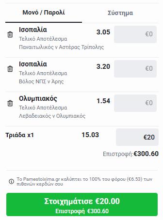 Μπορεί κάποιος να ρισκάρει σε τριάδα με ποντάρισμα χωρίς κατάθεση 20Ε και καθαρά (άμεσα αναλήψιμα) κέρδη.