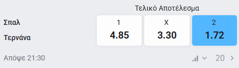 Τέλος, εκτός από τις ισοπαλίες, ποντάρεται και ένα διπλό από το πρωτάθλημα της Γ Ιταλίας. Η φορμαρισμένη Τερνάνα έρχεται από τέσσερις σερί νίκες με τέρματα 8-1.
