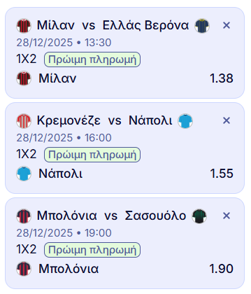 Καλημέρα. Οι δύο βασικοί πυλώνες σήμερα έρχονται από την Ιταλία και είναι η Μίλαν και η Νάπολι.