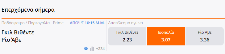 Η τρίτη ισοπαλία είναι από την Πορτογαλία και αφορά στην αναμέτρηση της Ζιλ Βιθέντε με τη Ρίο Άβε. Οι δύο αντίπαλοι έχουν μόνο ένα πόντο διαφορά και θεωρώ ότι με τον ένα βαθμό θα έμεναν ικανοποιημένες.