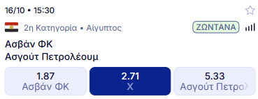 Απλά θα ήθελα να συμπληρώσω ότι στην Β Αιγύπτου έχει πέσει αρκετά η απόδοση του Χ στον αγώνα της Ασουάν με την Ασιούτ Πετρολέουμ…