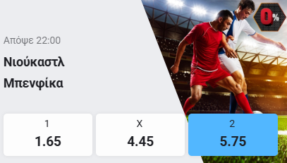 Στο Νιουκάστλ – Μπενφίκα, θεωρώ ότι οι μπουκ αδικούν τους Πορτογάλους με τις αποδόσεις τους που είναι πεντάρια (σχεδόν εξάρια) στο διπλό!