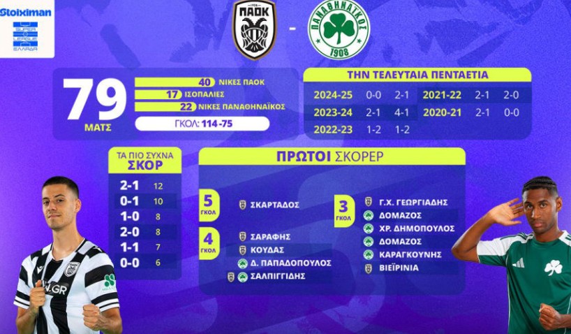 | 19.30 | ΠΑΟΚ – Παναθηναϊκός | 40 | 17 | 22 |