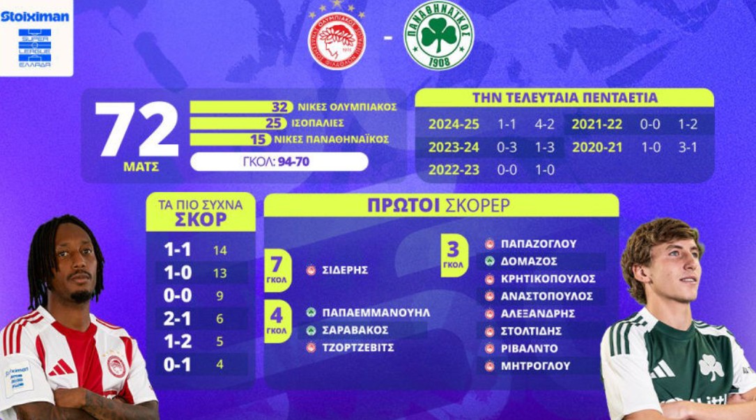 | 21.00 | Ολυμπιακός – Παναθηναϊκός | 32 | 25 | 15 |